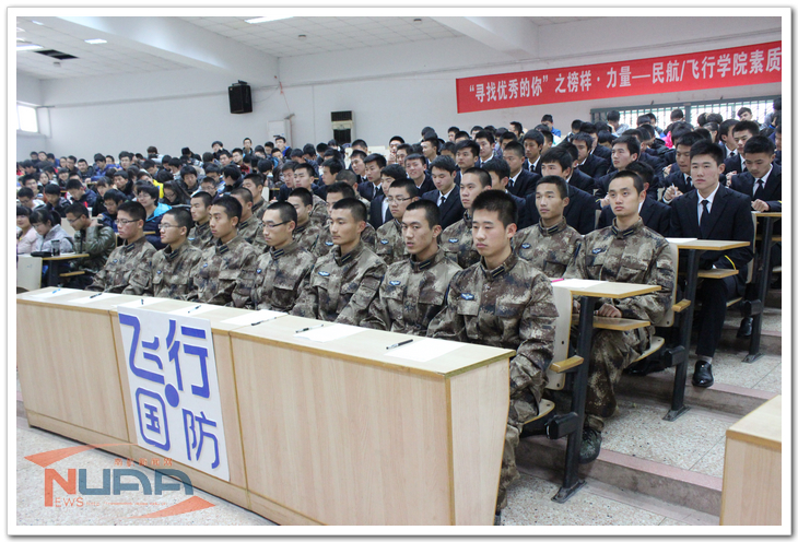 12月7日下午,能容纳400余人的将军路校区教室座无虚席,“寻找优秀的你”之榜样·力量——民航/飞行学院素质能力培养方案深入解析大会在这里拉开帷幕。本次大会共分为四部分,第一部分为“自我定位,交流分享”;第二部分为集体观看“笃志·前行”2011—2012年本科生总结表彰大会;第三部分为“寻找学习的榜样与前行的力量”;第四部分为“给榜样写一封信,并投递到榜样手中”。