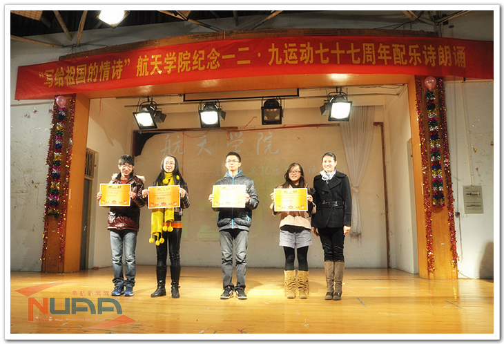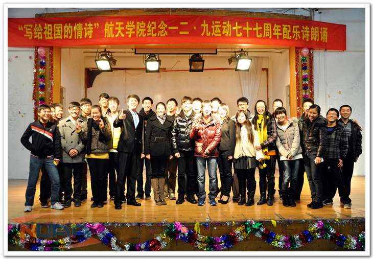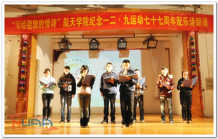12月7日晚,航天学院在将军路校区大学生活动中心开展了“写给祖国的情诗”纪念一二·九运动七十七周年配乐诗朗诵活动,航天学院团委书记庄晓舒、辅导员范伟,以及航天学院全体学生参与了此次活动。