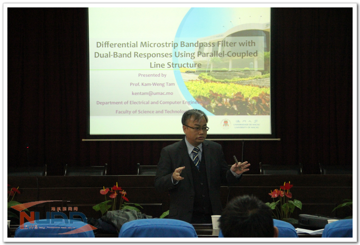 谭锦荣教授给学院大四本科学生、研究生做了题为“Differential Microstrip Bandpass Filter with Dual-Band Responeses Using Parallel-Coupled Line Structure”的学术报告,并与学院研究生就专业问题进行了交流和探讨。之后,澳门大学电机与电脑工程系助理教授马少丹给学生介绍了澳门大学电机与电脑工程系的整体概况,及每位老师的研究方向,并详细介绍了澳门大学的交流生的申报要求和待遇。