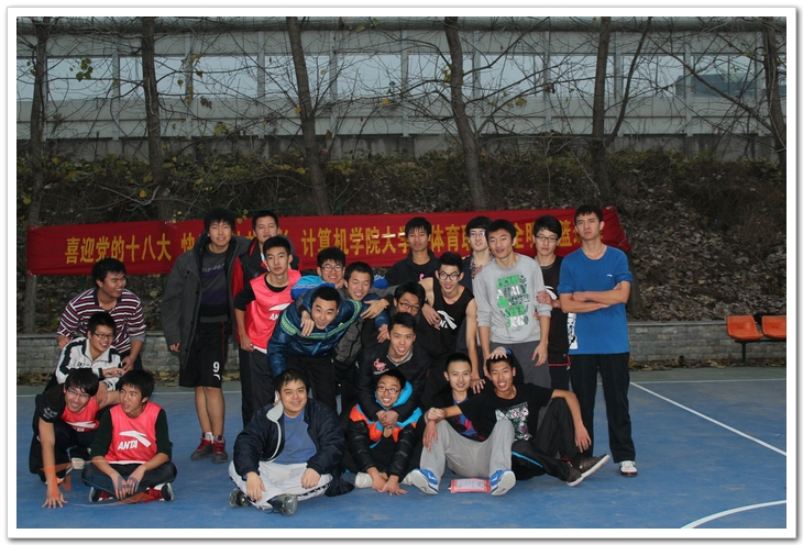 12月12日,计算机学院开展了由2011级、2012级中心组协同承办的篮球全明星赛。比赛以“喜迎党的十八大,快乐运动共成长”为主题,由 2012级辅导员唐志文及2011级辅导员刘彦辰分别领衔的大一队和大二队展开一场精彩的表演赛。 篮球场上,同学们你争我夺,一轮轮地抢球,投球动作潇洒,每个动作争锋相对,帅气利索。双方争夺异常激烈。比赛进行地如火如荼,双方队员都情绪高涨。全场队员都发挥出了全部的本领,他们闪电般的速度,准确的抢断,犀利的突破,花式的动作一次又一次地引爆了现场的气氛,全场的欢呼声一波接着一波。观众激情四射,现场的气氛十分活跃。在两位辅导员的带领下,本次篮球全明星赛顺利落下帷幕。