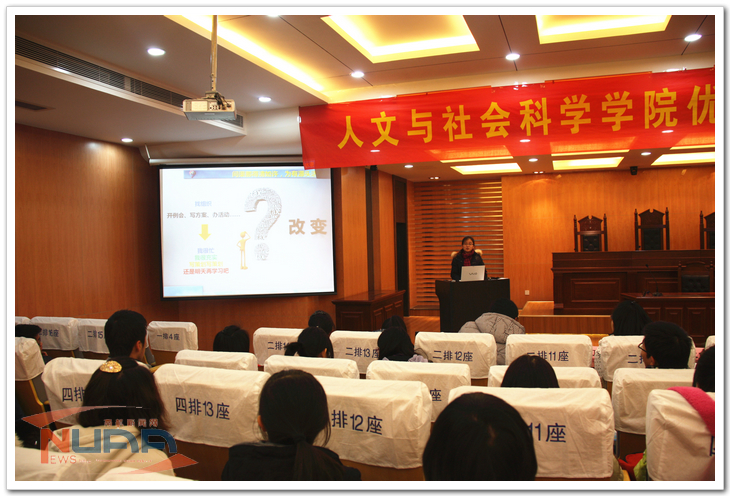 12月12日,人文与社会科学学院在将军路校区模拟法庭举办了人文与社会科学学院优秀学生事迹报告会。本次活动邀请了来自学校各院的六位优秀学生代表与同学们分享他们的成长故事。人文学院院长助理刘兼唐、本科生辅导员王丹参加了活动。