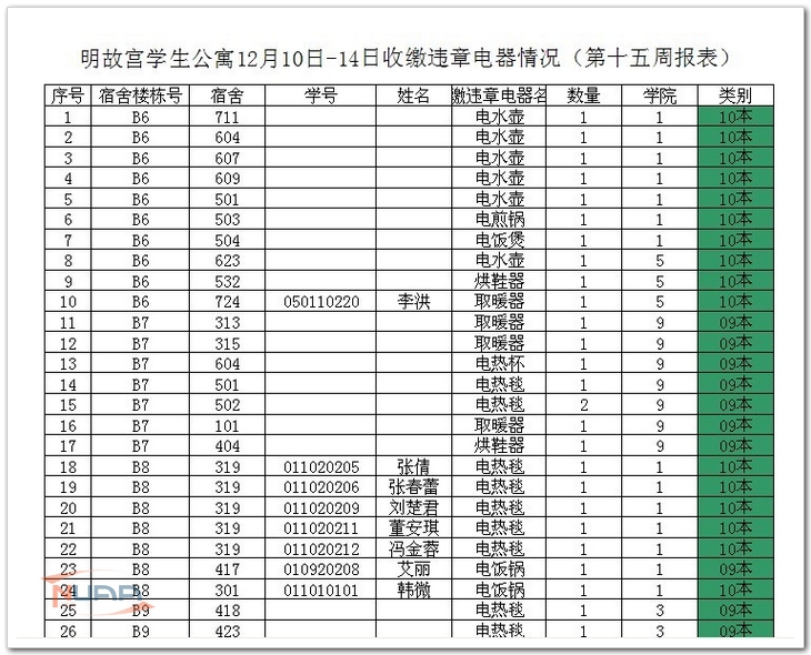 冬季是公寓安全用电、防火工作的重要时节,是全年安全工作的关键期。随着气温的逐渐下降,公寓内违规用电现象增加,各种诱发火灾的不安定因素逐步增多,学生公寓防火安全形势不容乐观。针对该形势,明故宫公寓在加强日常检查及安全教育的同时,采取一系列新举措,全力确保冬季公寓安全。 安全宣传教育是公寓安全工作中长期持续性的工作。公寓将图文宣传与口头教育相结合,使学生耳闻目染,无形中提高安全防范意识。火灾逃生方法、高校火灾的案例、违章电器使用危害等各类宣传展板齐全。为了让学生有危险就在身边意识,公寓将“12.8”火灾及B16栋恶性用电事件相关处理通告也张贴在门厅处,使同学引以为戒。 10月中旬以后,明故宫公寓根据各栋楼的具体情况,因地制宜地布置查房计划,缩短查房周期,将安全检查合理计划,高效执行。此外每周还定时召开安全会议,楼栋小结工作,楼宇间交流查房心得,共同进步。查房制度的严格执行,对查处违章用电,消除用电隐患,有效提高安全系数。 去年底明故宫智能电量计量系统全面启用,这不仅方便了学生自助购电,同时给公寓的安全用电管理工作也带来极大的益处。11月中旬以后,公寓进入学生违章用电的高发期。本部公寓针对宿舍无热水器等公用大功率电器特点,对学生每日用电量进行实时监控。对用电量明显异常的房间进行统计汇总,并于当天9点前以短信方式告知管理员,令其在日常查房中进行重点关注。 此办法的实施缩小了危险源检查范围,对提高查处违章用电准确率有明显效果。上月底某栋楼在16个用电异常房间中查出18件违章电器。随着检查的持续深入,每天高电量房间由以前的几十个下降到十几个,收缴的违章电器也逐日降低。对于收缴的违章电器,校区公寓每周汇总,以周报表形式报研究生院、学生处,联合多方力量对公寓安全齐抓共管,共同创建安全和谐的住宿环境。 在今后的安全工作中,明故宫公寓将继续对高用电宿舍的监查。同时为确保安全工作的彻底性,全面性。12月底将安排楼宇间的互查,中心安全员将参与到检查中,确保互查的公正性。