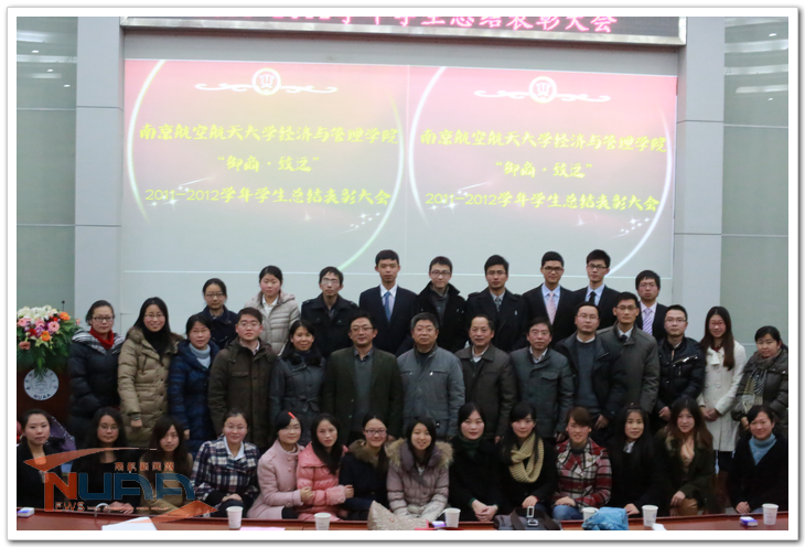 12月20日晚,经济与管理学院2011-2012学年学生总结表彰大会在将军路校区举行。学院党委书记李遥,院长周德群,副院长张卓、王英、朱建军,院长助理许静以及教师代表、班主任代表,近四百名学生代表参加了此次总结表彰大会。