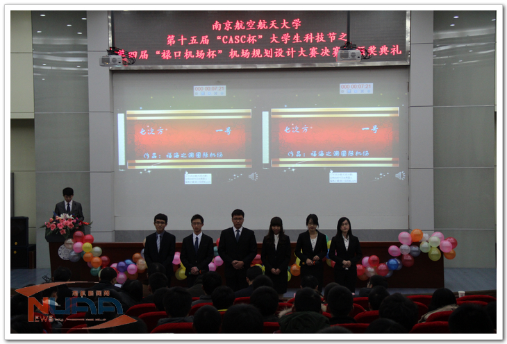 本届大赛以“安全、便捷、高效、绿色—机场让未来更美好”为主题,全校各学院共400多名本科学生报名参加,49支团队提交了实物作品参加初赛,近一个月的努力,最终10支队伍通过层层选拔,挺近决赛。来自全校各个院系的队伍向在场评委和观众展示了他们几个星期来的设计成果。参赛队伍各具特色,激昂的陈述、完美的视觉呈现、缜密的设计参数和睿智的答辩一次次让现场爆发出热烈的掌声。评委老师从专业技术的角度提出了很多中肯的意见和建议。本届大赛共评出一等奖1名、二等奖2名、三等奖3名、最佳口才奖1名、最佳人气奖1名、最佳展示奖1名、最佳创意奖1名。此外,今年南京禄口国际机场还对优秀选手开放“绿色实习通道”,为优秀选手提供实习机会。经过激励的比赛和争夺,最终罗浩巍、付朝阳、陈渝腊等五名优秀选手获得了“绿色实习通道”的奖宝贵机会。