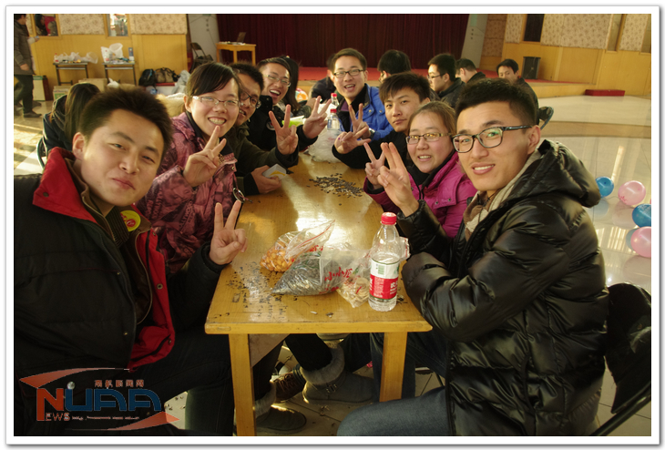 联欢活动内容丰富,精心设置了素质拓展和游戏等环节。在“解手链”、“五毛一块”、“驿站传书”、“搭河过桥”等游戏中,大家积极参与,气氛热烈。虽然气温骤降,天气寒冷,但是室内暖意融融。大家一起分享经历,聆听感悟,联欢在欢声笑语中落下帷幕。同学们仍意犹未尽,纷纷相约下次相聚。