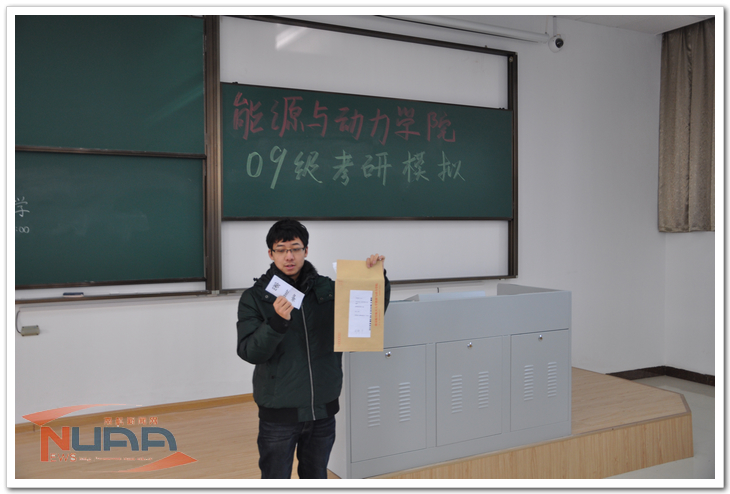 此次模拟考试活动完全模拟正式考研模式开展。时间安排为上午8:30—11:30进行数学考试,下午2:00—5:00进行英语考试。试题发放也严格按照正式考研的流程,工作人员提前将试题信封放于桌面。考生提前进入考场,并按照黑板上的名单对号入座,找到自己的试题信封。为了让本次参加考试的同学能切身感受考场氛围,能源与动力学院2009级团总支、中心组专门为每位考生制作了试题册、试题信封、密封条和姓名条。在考试前,特别安排活动组织人员为同学们详细讲解试题信封的拆解、考试时间、考试模式、试题信封的密封等考场上应特别注意的细节。本次活动获得了参与同学们的一致好评。