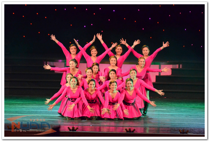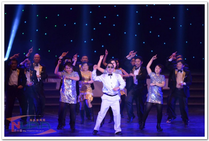 晚会中,后勤集团八大中心联袂参演的风采走秀成为最大亮点,集团的一线员工身着各具特色的工作服,神采奕奕、步伐轻扬,走出了后勤人的朝气蓬勃,走出了后勤人的活力四射。而随着韩国神曲《江南style》的音乐响起,后勤集团的“鸟叔”——公寓服务中心主任王庆德引爆了观众情绪,在他的带动下平时严肃认真的集团领导和中心主任们都惊艳亮相,动感十足的“骑马舞”走秀让现场掌声雷动,欢呼不已。集团领导与员工同乐,共舞贺新年,气氛欢快热烈。