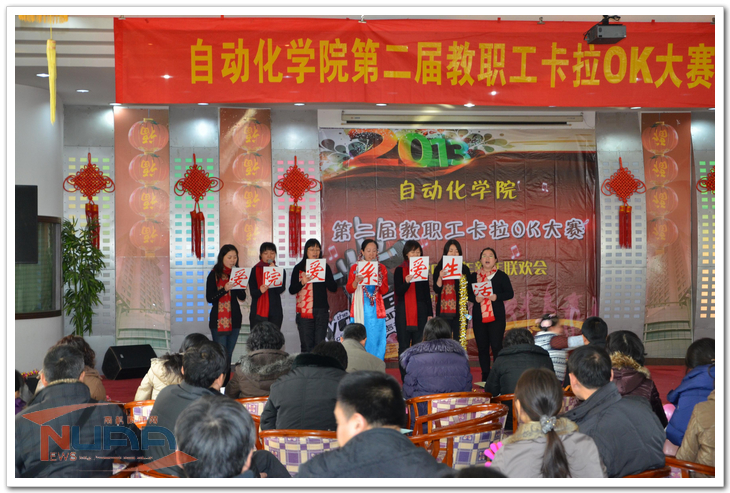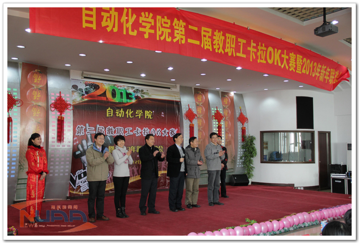 12月30号下午,在这辞旧迎新的美好时刻,自动化学院第二届“自动化好声音”教职工卡拉ok大赛暨2013年新年联欢会在明故宫校区西苑教工活动中心多功能厅举行。学校党委常委,纪委书记,工会主席吴庆文出席联欢会,校工会常务副主席袁贵平、研究生院副院长江驹以及自动化学院全部党政领导、全体教职工参加了本次活动。本次活动得到了学院各系、所、中心广大教职工的积极支持与响应,由八个基层单位自行推选出了8位评委老师。