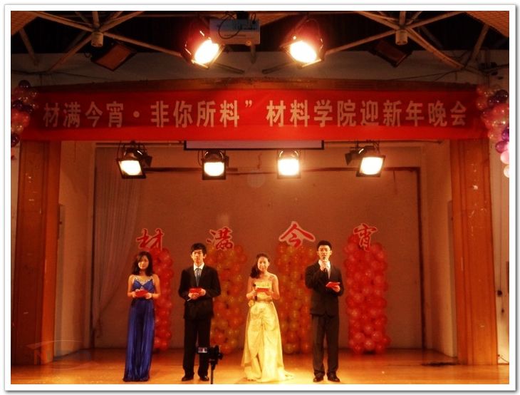 2013年元旦来临之际,为丰富学生文化生活,搭建师生交流平台,材料学院于12月28日晚在将军路校区大学生活动中心举行了“材满今宵•非你所料”迎新年师生联谊晚会。材料学院党委书记周克印、副院长梁文萍、院团委书记袁宗虎,以及各系教师代表、全体辅导员老师参加了活动,与全院学生共同联欢。
