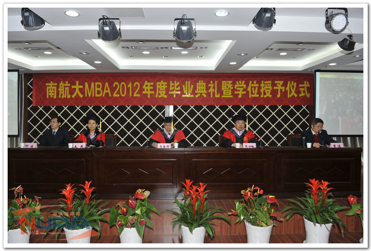 1月12日下午,“南京航空航天大学MBA2012年度毕业典礼暨学位授予仪式”在将军路校区举行。经管学院院长周德群,党委书记李遥,研究生院副院长沈以赴、经管学院副院长王英、MBA中心主任邓晶、2012年度MBA毕业生及导师、MBA中心工作人员及MBA联合会代表参加了此次毕业典礼。另外,部分毕业生家属也参加了此次盛典。