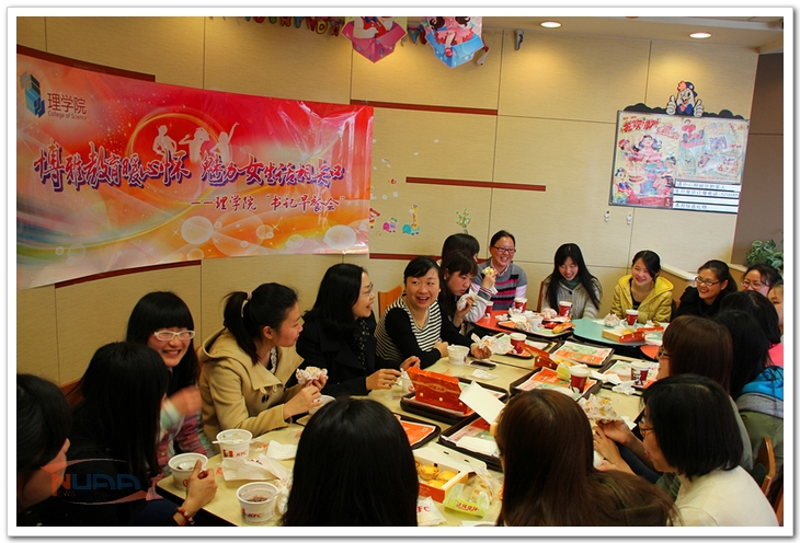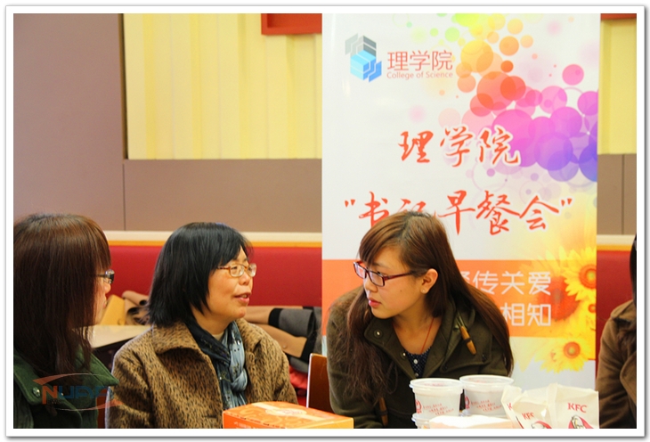 3月7日早上,南航理学院党委书记余春玲邀请理学院的女学生代表共进早餐,共过“女生节”。参与此次“书记早餐会”的有学院党委副书记王静以及各个年级的女生代表,包括本科生、硕士研究生、博士研究生。共同参与的还有理学院党委副书记王静、博雅导师唐月红教授、物理系副主任阚彩侠教授、教学办公室主任范娟、团委书记余金芬等女老师。适逢三八妇女节的到来,更为了契合南航“女生节”的传统,此次“书记早餐会”主题为“阳光早餐传关爱 魅力女生话相知”,没有“领导讲话”,没有“学生发言”,在轻松愉快的氛围中学生们与学院领导、老师共进早餐,交流对专业发展、职业选择、恋爱婚姻等问题的看法,共同度过了一个快乐温馨富有意义的节日。 席间,大家围绕事业、家庭问题展开了激烈的讨论。余春玲表示,事业有成、家庭幸福,是世界上大多数人都向往的一种生活模式,但并非人人可得。如同事业需要学习经营一样,家庭也需要学习经营。成功一定有方法,事业与家庭的平衡也有方法。作为女性,只有既做“大女人”,又做“小女人”,才能在事业与家庭之间找到适合自己的平衡点,进而实现事业的卓越,家庭的美满。余春玲用“修心、修身、修容”三修勉励在座的每一位女同学。 对于明天即将到来的“三八妇女节”,大家谈到了女性地位的变化。唐月红老师感慨说:“我记得在我的父母和祖父母那一代,男性在家中处于主导地位,妈妈、外婆更多的是服务和服从。现在的女性地位真是发生了翻天覆地的变化,获得了更多的权益,所以大家一定要感恩于生活在这样美好的时代,珍惜自己的美好时光。” 对于女生的学习问题,学生们也提出了自己的困惑。理学专业课程繁重,女生似乎会“水土不服”。对此,理学院最年轻的女教授阚彩侠以自己的亲身经历叙述了一名女生的理学成长路,其精彩经历让在座的女生们连连惊呼。 据悉,理学院“书记早餐会”是理学院博雅教育之“教授进宿舍”、“院长有约”、“理学院会客厅”之外的又一品牌系列活动,是理学院博雅教育的拓展和延续,在贯彻推行全员育人理念的同时实现了院领导与普通师生的无缝交流,丰富了师生的课余文化生活,促进了理学院的文化内涵建设。