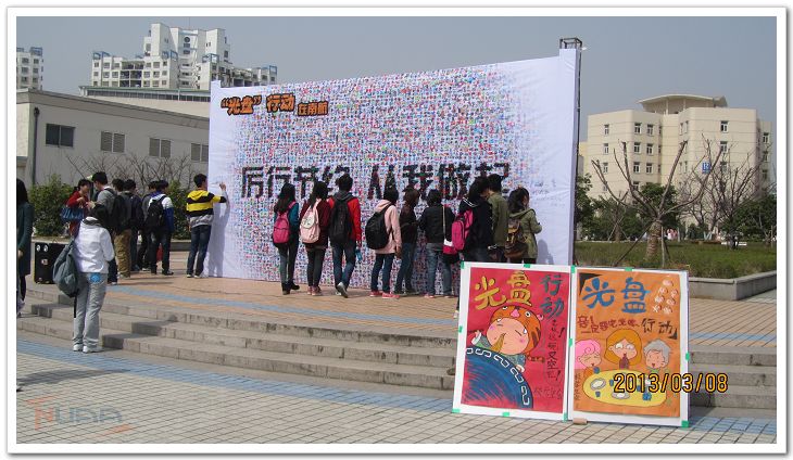 为号召全校同学积极参与,学生会在将军路校区六大食堂都派遣了“光盘使者”,在各食堂寻找“光盘达人”,向其派发光盘行动积分卡,并在包括人人、微博等新媒体平台上,积极宣传光盘理念,征集发布光盘照片,助力“光盘行动”。经过数天的努力,活动得到了广大同学们的支持,并在收集的近千张的“光盘”照片中挑选了337张拼成了本次活动的“照片墙”大喷。