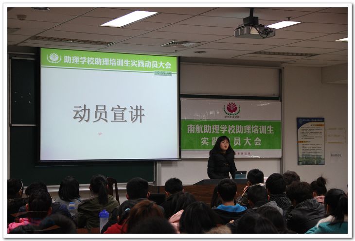 3月14日晚,学生助理学校在将军路校区召开了本学期第一次宣讲会暨实习动员大会,图书馆殷丽作为特邀嘉宾参加了此次动员大会。