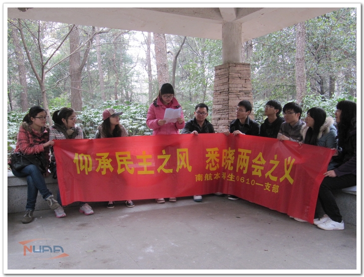 3月16日,材料学院本科生06101党支部开展了以“仰承民主之风,悉晓两会之义”为主题的“两会”精神学习活动。 当天上午,支部一行12人从将军路校区出发,徒步前往中山陵,仰承国父民主之风。在行进过程中,支部成员每人负责介绍一届自新中国成立以来所召开的“两会”内容、时代精神及重大历史意义,并就转变政府职能和经济发展模式、深入推进改革开放、教育公平、民生养老、拒贪防腐等“两会”热点话题交换了自己的看法和意见,悉晓两会之义。 中午,全体成员冒雨毅然行至中山陵。在瞻仰了孙中山先生遗像后,大家回忆起先生波澜壮阔的一生,对其致力于民主和自由的革命精神表达了深深的敬仰之情,纷纷表示作为一名大三学生,在日益开放和多元的时代背景下,要继承先烈遗志,努力学习科学文化知识,共同为伟大的中国梦插上腾飞的翅膀。 通过此次学习活动,党支部成员对人民代表大会制度和人民政治协商制度有了更为深入的了解,对中国的民主化进程有了更加深刻的认识,也对今后的学习、工作和生活有了更好的奋斗目标和生涯规划。据悉,材料学院将进一步开展学习十八大和“两会”精神的系列活动,争取对学生党员和广大入党积极分子的成长起到积极的引导作用。 ![]() ![]()