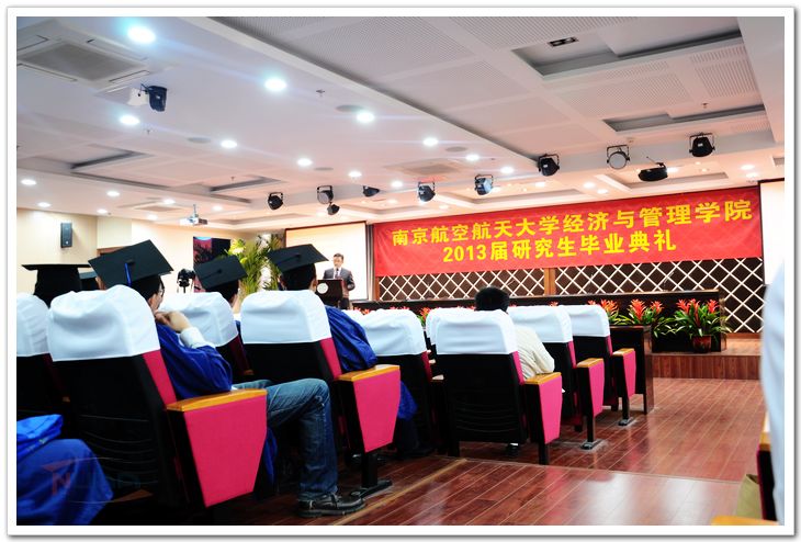 3月22日下午,经管院在将军路校区经管学院报告厅举行2013届研究生毕业典礼及学位授予仪式。经管学院全体院领导、硕士生导师代表、2013届研究生和家长代表出席了典礼。 毕业典礼由学院党委副书记许静主持,副院长张卓宣读了院学位委员会决议。院长周德群为毕业生们授予了学位,并发表了讲话,他对经管学院2013届硕士研究生顺利毕业和获得硕士学位表示了由衷的祝贺。他希望毕业生们能树立远大的目标,在新的岗位上勤奋刻苦、踏实工作,在今后的工作生活中继续学习,努力实践,不断充实自我。周院长热情洋溢、语重心长的讲话博得同学们阵阵热烈的掌声。