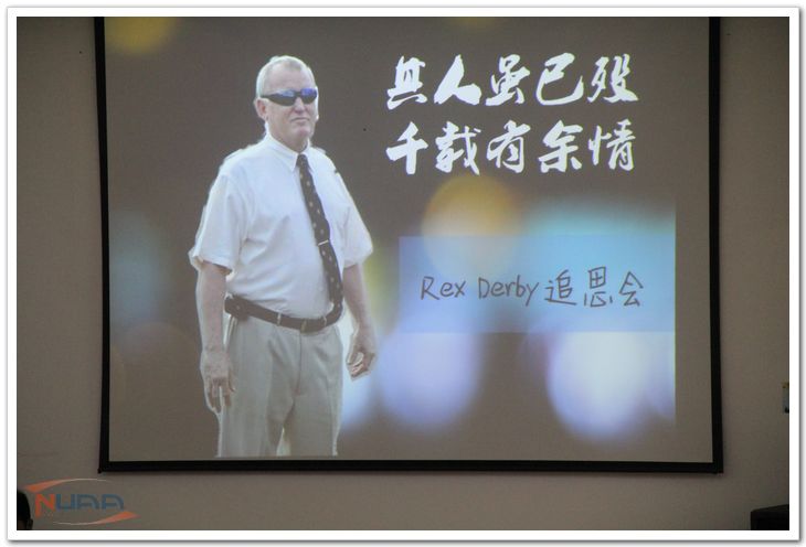 追思会以全体默哀悼念Rex Derby拉开序幕,随后播放的视频详细介绍了了Rex Derby的成长经历和在南航的任教历程,引起了学生的踊跃发言。飞行学员们纷纷讲述他们与Rex Derby共同生活学习的点点滴滴,怀念Rex Derby敬业的教学风格,思念Rex Derby对学生如慈父般的关爱。在场的每一名同学都静静的聆听,一幅幅感人的画面呈现在大家的脑海里,对恩师的不舍写在大家的脸上。恩师虽已逝去,但他将永远活在我们的心中,而他感人的事迹也将会永远留在南航的校园里。