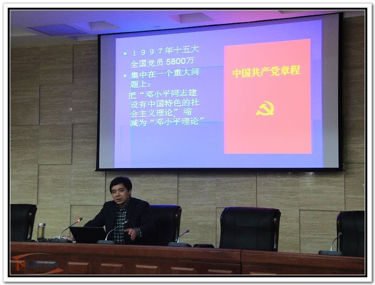 4月7日下午,中共江苏省委党校周延胜副教授应邀为外国语学院和理学院党员、积极分子为主的师生作了题为《新篇章新征程 新期待——学习贯彻党的十八大精神》的报告,报告会在将军路校区举行,会场座无虚席。外国语学院和理学院党政领导参加了报告会,外国语学院党委书记刘健荣主持了报告会。 周延胜副教授通过回顾党的历次全国代表大会的贡献及十七大以来的十年科学发展情况,介绍了党的十八大召开的时代背景;通过总结中国特色社会主义道路探索过程中的历史经验教训及成就,阐述了十八大的主题与主线;通过解读科学发展观的新定位、社会主义核心价值观的新提炼、宏伟蓝图的新设计,阐明了十八大的主要任务与贡献;通过重点阐述扎实推进社会主义文化强国建设、大力推进生态文明建设、提高党的建设科学化水平等六方面,深入浅出地诠释了历史的重托和人民的期待。两个小时的报告生动幽默、见解独到、内涵深刻,令广大师生受益匪浅。 刘健荣总结了报告的主要内容,认为报告内容丰富、视野开阔,对致力于实现“南航梦”的南航人具有重要的引航作用,指出广大师生特别是党员、积极分子应该深入思考领会党的十八大精神,并将其贯彻落实到日常工作学习中,统一思想,坚定目标,为实现南航人共同的梦想而奋斗。 ![]() ![]() ![]()