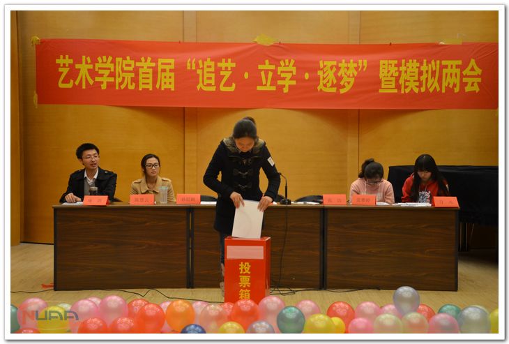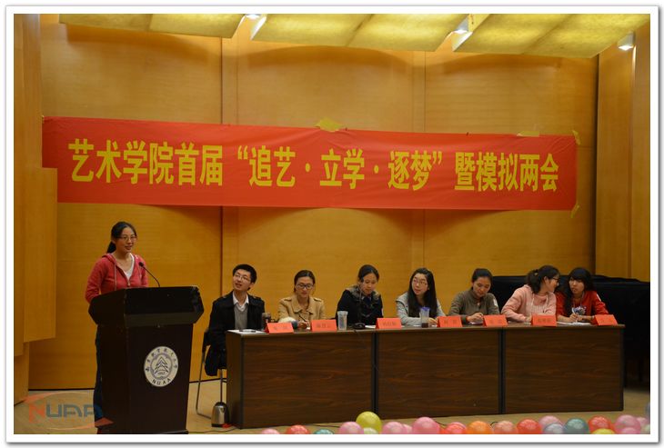 4月11日晚,艺术学院首届“追艺•立学•逐梦”模拟两会在将军路校区举行。院党委副书记徐曙峰,班主任代表王立庆教授,院团委书记雷蕾,辅导员庞健、陈慧云出席了本次活动。 在模拟的全国人民代表大会会议上,来自全国14个地区的代表团分别就中国当前发展中的问题提出了自己的提案。与会“代表”都认真倾听着各代表团有关国家发展的意见和建议。 模拟两会进行了“别开生面”的“两会版一站到底”,主持人现场抽取了11名与会代表,就中国两会知识以及艺术学院建设相关问题进行轮流提问,来自3个不同代表团的王依人,谭逸凡和沈钰同学获得最后胜利,赢得了“两会一站到底‘站神’”的称号。 本次活动旨在引导每一位当代大学生应具备担当意识,了解中国社会的发展,同时,作为艺术学院的一份子,了解学院的建设。 ![]() ![]() ![]() ![]() |