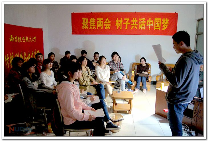 4月13日晚,“聚焦两会•材子共话中国梦”学习两会主题活动在将军路校区举行,活动以青春思辨会形式开展。2012级辅导员关天茹,薛培琳及各团支书出席本次活动。