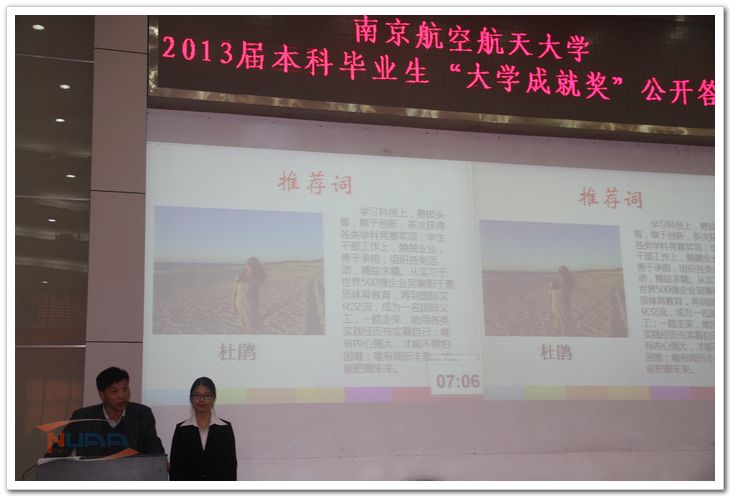 为贯彻落实我校“高素质公民和未来的开拓者”的人才培养目标,深入推进学生素质能力培养方案的实施,充分展示我校毕业生的风采和育人成果,我校4月24日在将军路校区组织了2013届本科毕业生“大学成就奖”公开答辩活动。