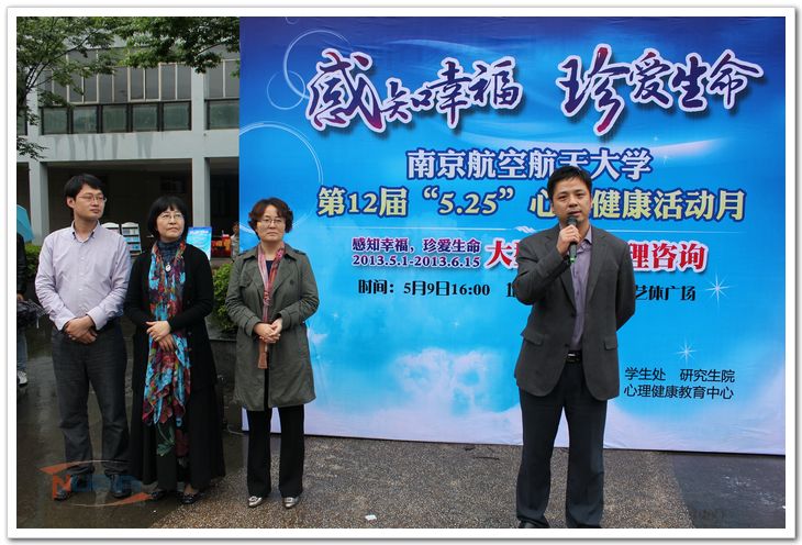5月9日下午,我校“5.25心理健康教育月开幕式”在将军路校区举行。我校学生处副处长陈修文,江宁大学生城心理健康教育基地主任、南医大心理健康教育中心的郑爱民、仙林大学城心理健康教育基地主任、南师大心理健康教育中心的周红、南京信息职业技术学院心理健康教育中心的陶爱荣、南医大学心理健康教育中心的王志琳博士及我校心理健康教育中心的老师参加了开幕式。
