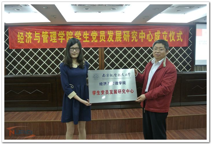 李遥为中心授牌,并从“党员”“发展”“研究”这三个关键词中给全体学生党员提出了要求和希望,希望每一位党员发挥好“榜样、示范、带动、辐射”的作用,切实履行党员义务;学生党员从发展的角度考虑将个人成长与组织发展有机结合;党员同学们在工作中多思考,并对实践中出现的各种问题,有针对性地开展应用性调查研究和研讨, 使党建工作更加科学化和系统化。学院组宣委员任盈盈宣读了党委组织部关于增补经济与管理学院学生党总支委员会请示的批复;学生党总支副书记袁颖回顾了学生党总支成立以来所取得的成绩,剖析了学生党建工作中存在的问题。