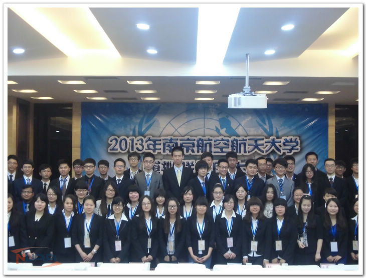 5月18日至19日,由外国语学院和校模拟联合国协会共同主办的2013年南京航空航天大学模拟联合国大会在我校将军路校区成功举行。外国语学院党委副书记庞小燕出席了开幕式并致辞。本次活动吸引了来自华东理工大学、南京理工大学、南京师范大学、河海大学、南京财经大学、中国药科大学、扬州大学、常州大学、西交利物浦大学、大连科技学院等全国11所高校以及我校留学生在内的共计112名代表参会,是我校模联活动迄今为止规模最大、参与人数最多、选手范围最广的一次大会。