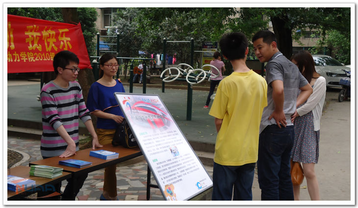5月19日下午,能源与动力学院2010级党支部 “迎亚青•盼青奥”志愿宣传小分队来到南航卫桥新村社区,开展关于亚青会、青奥会的宣传活动,为即将到来的体育盛会预热造势。 在街道工作人员的协助下,同学们一部分在社区健身小广场上挂横幅、一部分竖展板、并不时的向过往的路人普及亚青及青奥的知识,并还有一部分向居民们分发宣传手册,各项工作开展的井然有序。 社区群众们对本次宣传活动也给出了高度评价,他们表示,通过同学们的讲解以及相关的宣传手册,对亚青会、青奥会加深了认识,对南京举办这两项体育盛会的重要意义有了新的看法,作为一名南京人,要从切身行动上向外界展示南京的风采。 据悉,同学们之所以选择到卫桥新村社区开展这一宣传活动,除了为两项盛会造势外,还考虑到卫桥新村社区作为我校部分离退休老教职工生活所在,社区老年人居多的现象。他们认为,亚青会、青奥会虽是针对青少年的运动会,但是老年人也应该参与进来,这样不仅能提高两项盛会的影响力,而且能让老人们感受到青少年的激情,让他们的生活更有活力。