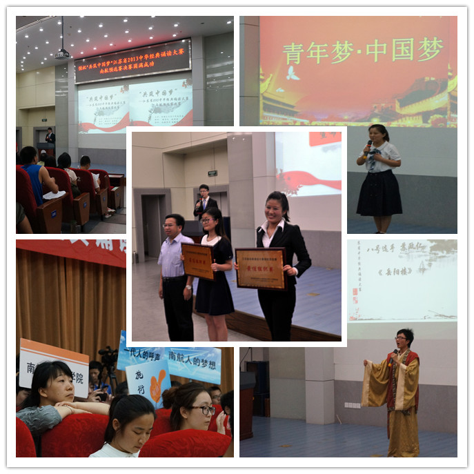 5月21日晚,由校语言文字工作委员会主办、教务处及团委协办、校语委办携手大学生国学社承办的“共筑中国梦”江苏省2013中华经典诵读大赛南航预选赛决赛在将军路校区举行。教务处处长王成华、学生处副处长陈修文、校语委办主任江爱华、团委副书记徐川出席活动。 通过两个小时的精彩呈现,最终民航学院王世阁同学摘得桂冠,另有2名同学获得二等奖、3名同学获得三等奖、9名同学获得优胜奖,人文与社会科学学院和继续教育学院获得最佳组织奖。校语委办将于近期培训、选送获奖选手参加省级复赛。 本次预选赛,共有52名同学报名参赛。经过初赛的激烈角逐,15名优秀选手脱颖而出、晋级决赛。每位选手分别进行了“共筑中国梦”主题演讲及经典诵读篇目朗诵。参赛选手们结合自己的青春梦、南航梦阐述了对“中国梦”的认识和向往,并通过准确的表情达意诠释了经典诗文的民族精神和时代精神。 此次大赛分展示了同学们的组织能力、创新精神和青春热情,赛事不仅设置了亲友团,还在比赛现场抽签选出大众评审团,让更多的同学参与到赛事中。 ![]() |