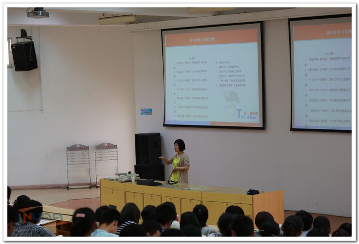 2012年获暑期实践优秀团队、明星团队的队长分别向同学们展示了实践的具体过程、分享实践体会与感悟,绿色之夏、乡村图书馆建设、献礼人文青奥等等,给学生以启迪,为学生社会实践打开思路。