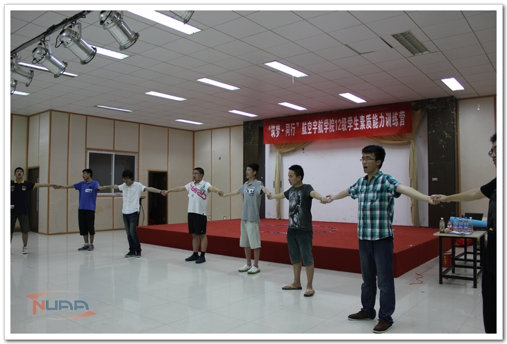 5月25日晚,航空宇航学院“寻梦 筑梦 同心 同行”2012级学生素质能力训练营第一期活动在艺术中心多功能厅正式开始。本期活动针对年级学生干部,邀请培训经验丰富的人文与社会科学学院辅导员王丹进行素质拓展训练,旨在增进学生干部沟通合作,体验团队的力量,感悟责任意识。