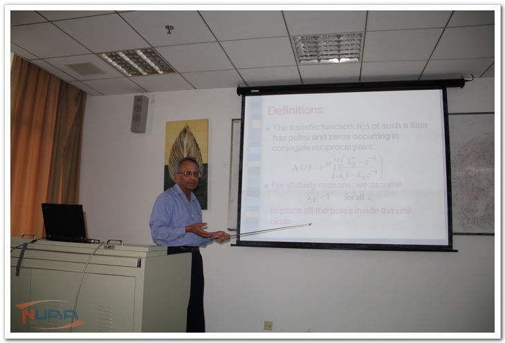5月24日下午,美国工程院院士、加州大学圣巴巴拉分校电气与计算机工程系研究员Sanjit K. Mitra应邀到电子信息工程学院作了一场名为“Digital all pass filter:a versatile space building space block”的学术报告。电子信息工程学院副院长张弓主持报告会,学院部分老师和研究生参加并聆听了报告。 在技术报告中,Mitra教授主要围绕着数字全通滤波器设计展开,数字全通滤波器是一种高计算效率的信号处理模块,在信号处理的多个领域都极具应用价值。本次报告将回顾数字全通滤波器的各类特性,并对数字滤波器的各类应用作全面综述,内容包括陷波滤波、低敏感度数字滤波器实现、调谐滤波器设计、互补滤波和滤波器组、多速率滤波、数字音频以及图像缩放等。在报告的提问环节,Mitra教授与台下的诸位师生进行了积极的交流互动,回答了各位师生提出的各类问题。 在报告会之后,张弓和学院数字信号处理课程组的相关老师与Mitra教授进行了数字信号处理教学方面的座谈,对数字信号处理教学给出了相关的意见。