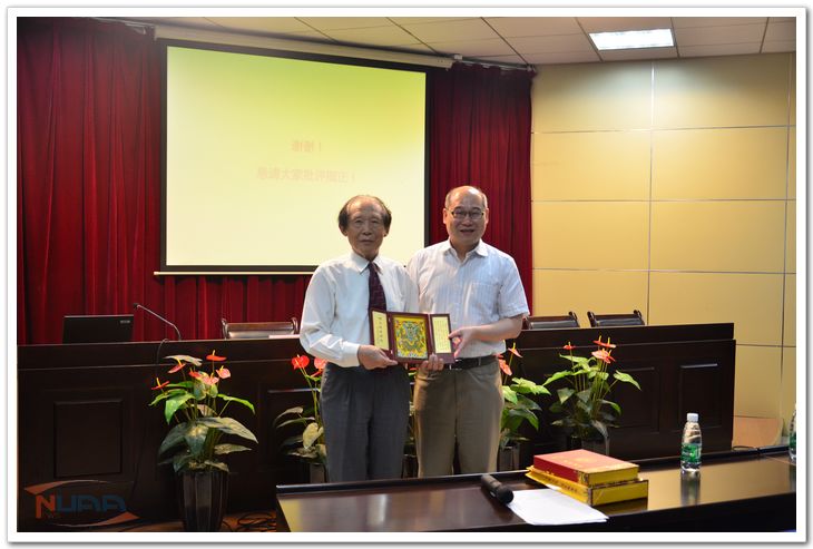参加报告会的师生和陈国良院士开展了热烈的互动讨论,大家积极向陈国良院士请教科研、教学方面的经验,陈国良院士则一一为大家解答。黄志球指出,陈院士的宝贵经验和求真、务实的科研态度,值得每个人去认真学习并深刻体会,尤其给年轻的研究生和导师就如何走正确的科研之路指明了方向。黄志球代表学院对陈院士莅临指导工作表示感谢,并向陈国良院士赠送了“问天”科学讲坛纪念品。