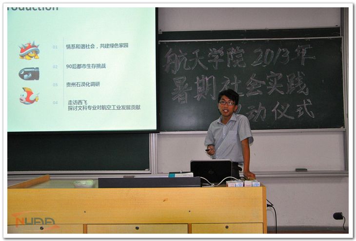 6月6日晚,航天学院在将军路校区6101教室举行“青年航天梦· 青春在行动”2013年暑期社会实践启动仪式。航天学院2010级辅导员管永星,2012级辅导员范伟出席了此次启动仪式。