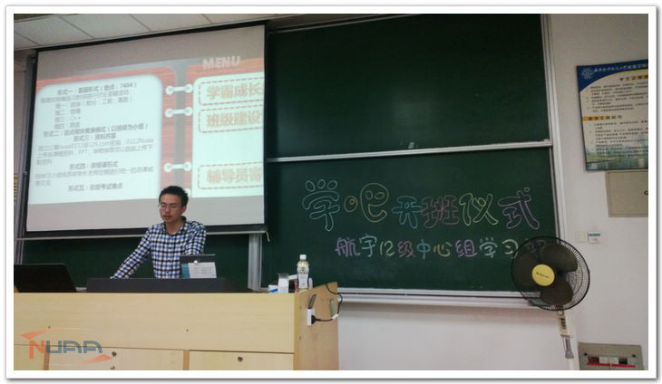 6月17日晚,航空宇航学院2012级同学自发组建的“学吧在行动”长期交流学习平台在将军路校区正式启动。2012级辅导员朱航及来自各个班级的60余名同学参加了“学吧”的开班仪式。 开班仪式上,2012级冯如班董炜以自己的真实经历与同学们分享了“学霸成长之路”,并且讲述了2012级冯如班与钱伟长班同学自主组建“筑梦团队”进而吸引年级更多同学组建“学吧”的过程。为给更多同学搭建学习、科创交流辅导平台,将此活动长期推广,“筑梦团队”将“学吧”打造成了一个真实的班集体,开班仪式上成员们建立了自己的班委会、开启第一期学习结队竞赛比拼,并公布了后续班级活动计划。开班仪式结束前,朱航也表达了自己对“学吧”平台的肯定与支持,希望同学们能在这个平台中树立学习目标,建立深厚的友谊,同时真正体会到学习和科创的乐趣。
