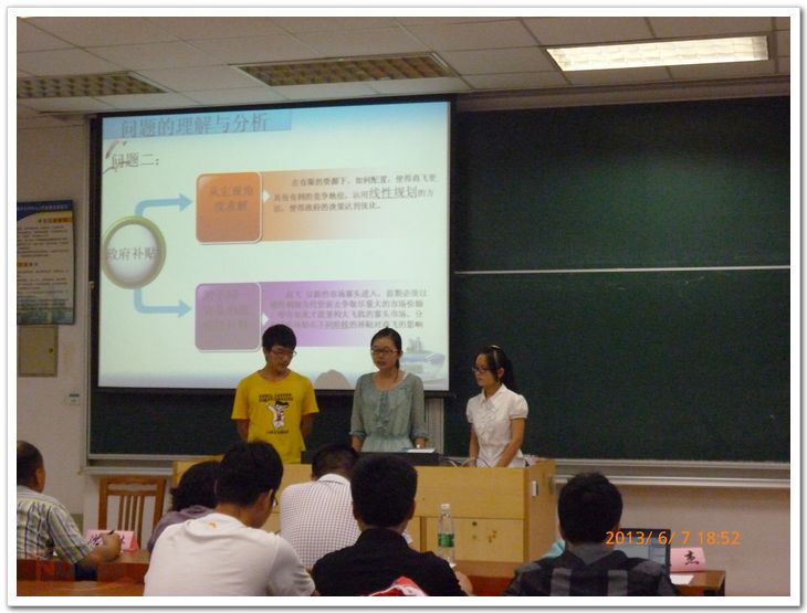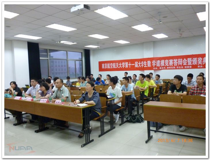 2013年6月7日,南京航空航天大学第十一届大学生数模竞赛答辩会暨颁奖典礼(本科组)顺利举行。数模竞赛指导老师文杰、沙春林、张丽萍、朱晓萌和郝小忠担任答辩会评委。