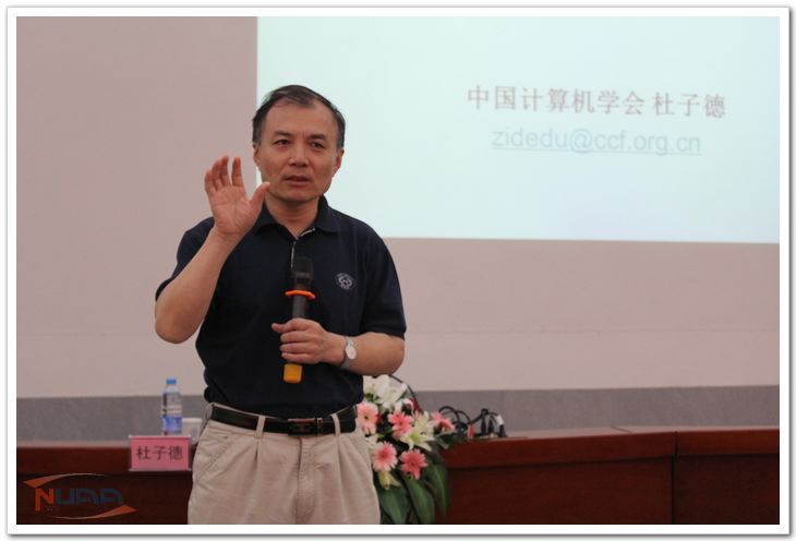 6月22日上午,中国计算机学会秘书长杜子德先生应邀来我校将军路校区主楼作了一场题为“如何度过大学生活”的讲座。计算机科学与技术学院党委书记江国华、副院长王箭以及来自不同年级的学生代表到场听讲,讲座由江国华主持。