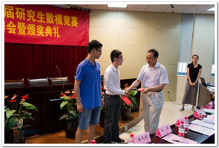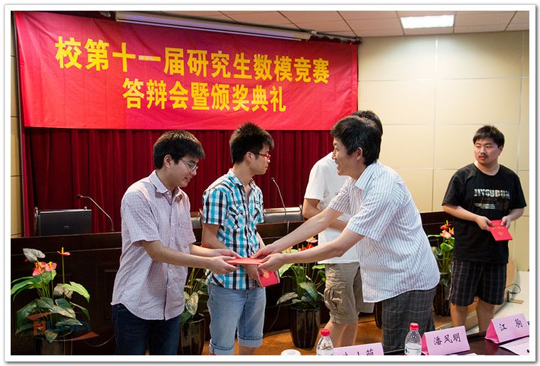6月24日上午,校第十一届研究生数模竞赛答辩会暨颁奖典礼在明故宫校区举行。研究生院副院长江驹、理学院副院长潘风明出席仪式。校数模竞赛教练组老师倪勤、文杰、张丽萍、朱小萌、沙春林担任答辩会评委。