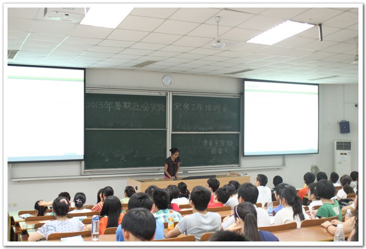 7月4日晚,2013年暑期社会实践宣传工作培训大会在我校将军路校区4101教室举行。校党委宣传部、校团委相关老师及各暑期社会实践小分队队长及宣传员参加了本次培训。 宣传部外宣记者团团长陈琴以《如何运用媒体提高社会实践活动的影响力》为题,结合往年暑期社会实践对外宣传实践案例,从什么样的社会实践可做宣传、不同媒体的侧重点、如何做好媒体策划、如何撰写媒体邀请函、如何写好新闻稿等五部分向各暑期社会实践小分队宣传员进行培训,提出“不要为宣传而宣传,拒绝作秀,要在实践中受教育长才干做贡献”的观点。 各暑期社会实践小分队宣传员认真听讲,培训会后与外宣记者团的学生记者进行了交流。同学们通过此次培训,也进一步明确了暑期社会实践的宣传工作的方法。 ![]()