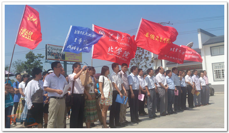 7月9日上午,理学院赴小岗村调研团队参加了由安徽省教育局主办,村委协办的“安徽省小岗村大学生假期社会实践教育基地揭牌仪式”。同来参加活动的还有中国农业大学、江南大学、安徽科技学院等几所省内和省外高校的实践团队以及省、市、县的多位领导。仪式后,实践团队成员应邀接受了安徽省凤阳县电视台记者的采访,介绍了团队的实践项目的主要内容安排,并讲述了队员的心得体会。