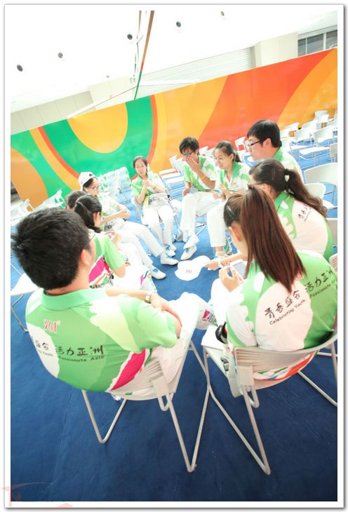 亚青会志愿者培训过程中有意识、有计划地安排了“志愿者团队建设与管理”、“志愿者交流与沟通”“文明礼仪”、“亚青会口语培训”等课程。同学们通过系统地课程学习,对沟通表达能力有了全新的认识;此外,场馆服务实训又为广大学生提供了将理论与实践有机结合的平台,同学时刻处在和他人尤其是和外国友人的积极交流之中。90%以上的南航志愿者都反映,通过参与亚青会,自己的沟通表达能力有了明显的提高。