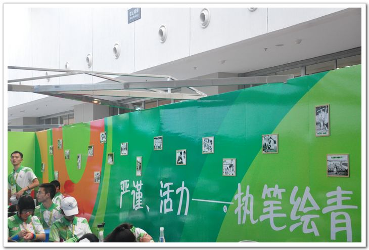 走进亚青会国博馆的志愿者之家,各面墙上名为《简笔·青春》的图片展立刻吸引了笔者的眼球。8月16日,由我校亚青媒体运行团队的志愿者制作的南航亚青志愿者风采简笔画画集正式出炉。这是一个由我校各志愿服务岗位的志愿者在岗服务时的照片,经过处理后汇集在一起所形成的简笔画画集。 这组图片集的素材来自于迄今为止的以志愿者为主的原始照片材料。为了画集能够更加真实地反映志愿者风貌,制作团队精心选取了能够体现志愿者服务、关爱细节的照片。他们将所有照片运用软件制作成简笔画的风格,并为每张图片添加标语,最终制成出一套简笔画画集献礼亚青。