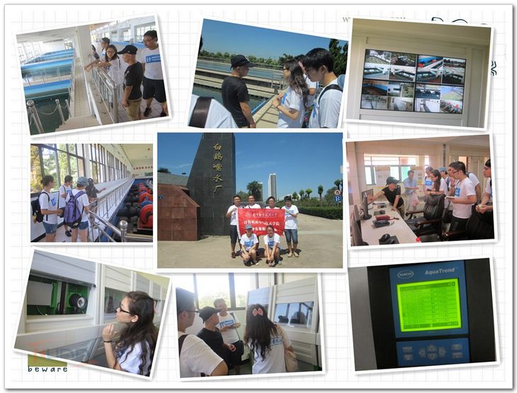 在武汉之行中,该实践分队赴武汉市白鹤嘴水厂进行实地参观。在参观过程中,负责人向实践分队介绍到水厂净化主要包括取水,过滤,消毒,输水等阶段。当谈到该厂的自动化时,总工程师说“全部水处理过程均实现了电脑远程控制监测,可以更直观动态监测水质状况,并根据需要随时调整运行指标。其中起主要消毒作用的6台自动投氯机和2台加药机也全部自动化电脑控制的。”该实践队长阮航也表示,在参观过程中最大的感受就是15万平方米左右的厂房没看见工人,只有几个负责看守厂房和负责监控电脑的人员。该实践分队队员表示切身感受到了物联网的传感、远程遥控等技术在环保中的不可替代的作用。