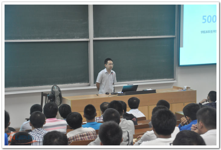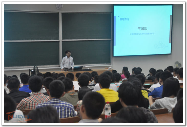 9月6日晚,计算机科学与技术学院2013级新生第一次主题月讲评在将军路校区举行。学院党委副书记王国军,各年级辅导员及2013级全体新生参加会议。月讲评以“共享青春,拓扑未来”为主题,由学院2013级新生辅导员段然主讲。 活动以南航六十周年校庆宣传片引入,生动形象地展现了南航的历史发展及现状,使新生们更清晰地了解南航。随后,新生就“你心中的大学”话题展开互动交流,畅谈入学前对南航的憧憬与向往,和未来四年的人生规划。接着,2011级学习典范陈璐、2012年微软“编程之美”全国挑战赛第三名得主孙书洲分别上台与新生分享了两年来的大学学习和生活经验。最后,辅导员段然通过播放计算机人对未来世界描述的短片,向新生们介绍了计算机学院各专业的专业特色,并用数据鼓励新生努力学习、积极探索,争当未来IT精英。