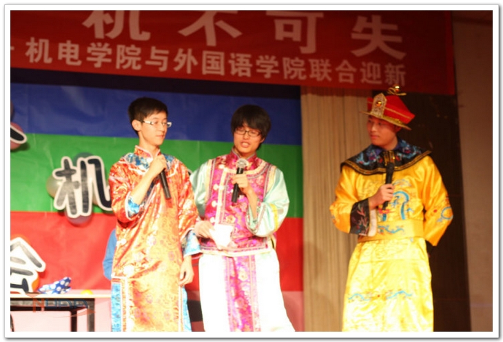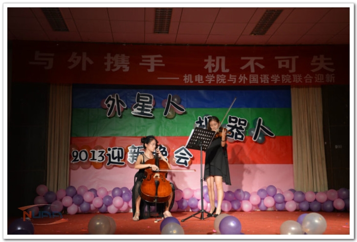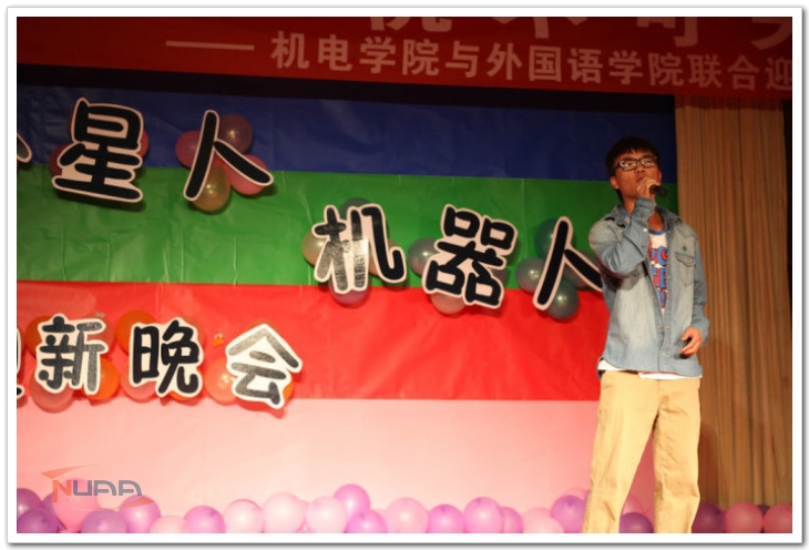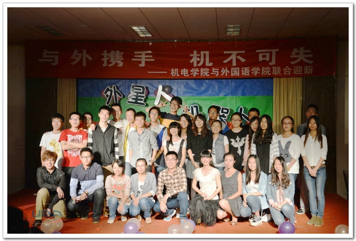 9月26日晚,机电学院和外国语学院“机器人与外星人”联合迎新晚会在将军路校区艺术中心多功能厅举行。两个学院的团委书记、新生辅导员和300多名2013级新生一同观看了晚会。 晚会在《忆军训•梦大学》的视频中拉开帷幕,点燃了同学们的激情。随即,各种形式的精彩节目连番上演,动感绚丽的国标舞表演、优雅大气的大小提琴合奏、爆笑恶搞的古装舞台剧、悠扬动听的古筝独奏、真实感人的国防生话剧、全场大合唱的歌曲串烧、考验默契的互动游戏….每一个节目都引得台下一片欢呼。整场晚会笑声连连,掌声不断,洋溢着浓烈的青春气息。在欢笑中,同学们之间的距离在拉近,学生和老师之间的关系也变的更加亲密。