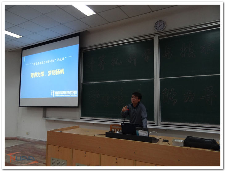 10月20日晚,计算机科学与技术学院2013级全体新生在将军路校区4102教室召开了主题为“青春为桨,梦想扬帆”的公开月讲评,副院长陈兵、院党委副书记王国军、辅导员唐志文、刘彦辰参加了此次活动,活动由大一辅导员段然主持。