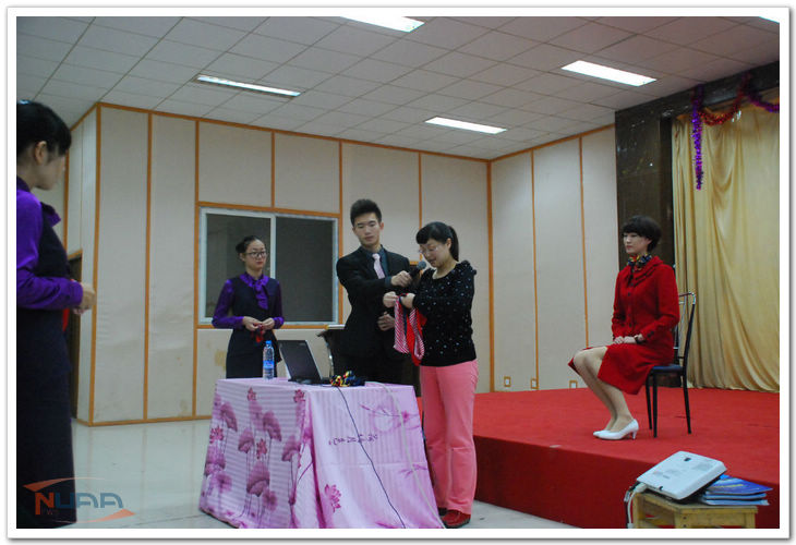 作为服务人员,外部形象的大方自然与内在的细心耐心相结合才能更好的为客人服务。对此,赵媛老师对同学们提出了几点要求,可概括为微笑服务、贴心服务和责任意识。微笑服务,即服务人员需用真挚的笑容面对客人。笑容不需太过刻意,只有发自内心才会甜美,才会给人如沐春风之感。
