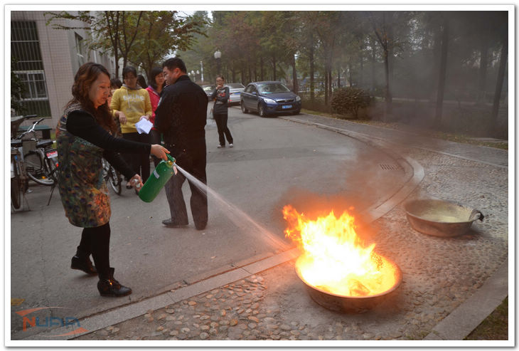 为了增强全员消防意识,了解火灾发生后应如何逃生,后勤集团结合“119”消防日,在校保卫处的指导下,于11月8日下午,开展了后勤楼消防演练。 下午,“后勤楼三楼发现火情,火情无法控制,开始疏散!”在后勤集团副总经理张明的一声令下,消防演练开始了!大家用湿毛巾、湿袖口捂住口鼻,沿着墙边,弯着腰,井然有序的摸索着下楼,并到达安全地带。张明指出此次消防逃生演练,大家都做的很好,掌握了基本要领,在发生真实火情时也希望大家能不慌不乱,有序逃生。保卫处消防科科长周栋栋带领大家一起学习了消防知识。他详细讲解了发生火灾如何疏散逃生,如何正确使用灭火器等,大家动手实际操作了灭火器。