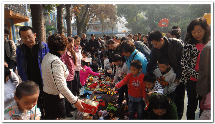 11月8日上午,第一届大班爱心义卖活动在幼教中心进行。 为了使爱心义卖活动顺利进行,大班组老师多次和中心领导认真细致地进行义卖活动方案的讨论、调整。大班组孩子和家长对活动的支持也相当给力,他们积极热情的从家里带来了很多图书、玩具、文具,有的孩子带来了崭新的玩具,还有的家长竟然抱来了一整箱物品进行义卖。让老师们非常感动!看着琳琅满目的物品,大班组教师又将物品进行分类整理,设置了一元区、三元区、五元区和十元区。为体现活动的透明性、公正性,每个班级还邀请了家长志愿者参与义卖活动,各班分管不同类别,责任到人,为义卖活动的有序进行做好了充足的前期工作。