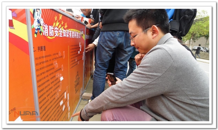 你想尝试现场灭火吗?你想体验一把当消防员的感受吗?你关注过身边的火灾自动报警装置吗?11月12日,在南京航空航天大学将军路校区举办的2013年度消防日文化节活动,吸引了百余名师生踊跃参与互动体验。 本次“119”消防日文化节活动紧密贴合了2013年消防日主题:认识火灾,学会逃生。与往年不同,今年的消防日文化节增加了很多精心设计的互动环节。同学们可以亲自参与,轮流体验,更可以拿到精美的小礼品。